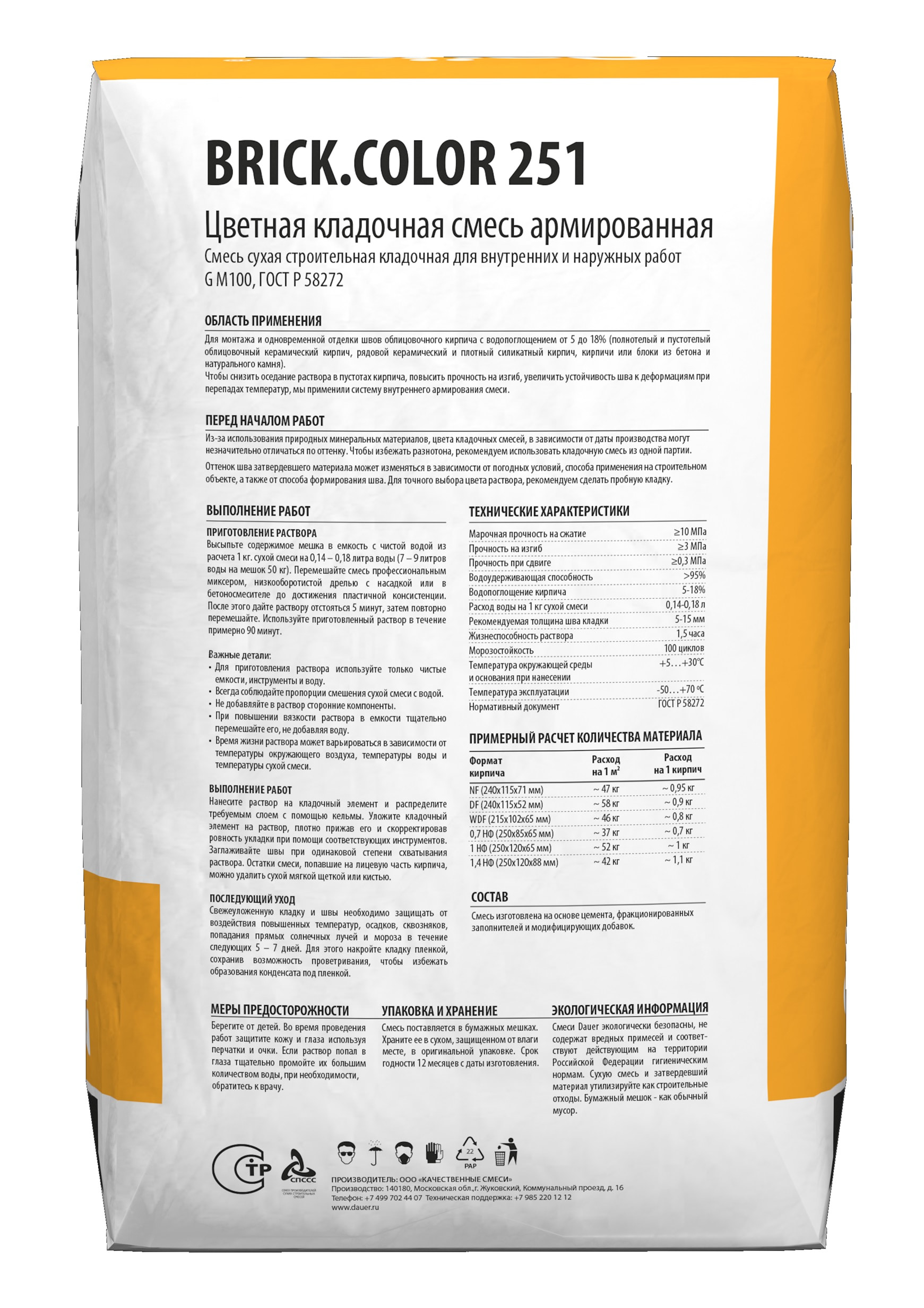 Цветная кладочная смесь для элементов кладки с водопоглощением от 5 до 18%, обладает стойкостью цвета к выгоранию.