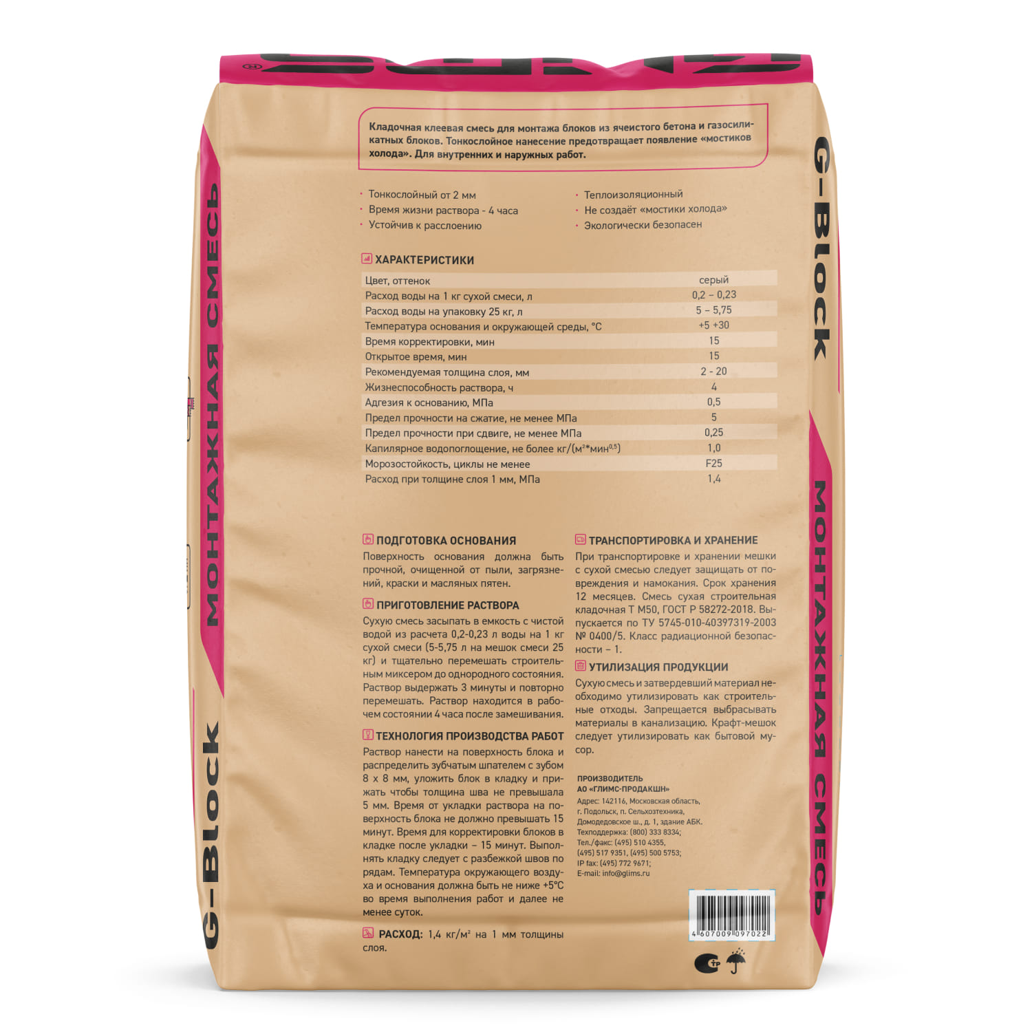 GLIMS G-Block это кладочная клеевая смесь для монтажа газосиликатных блоков, смесь можно применять для внутренних работ и наружных, клеевой состав не создает "мостики холода".