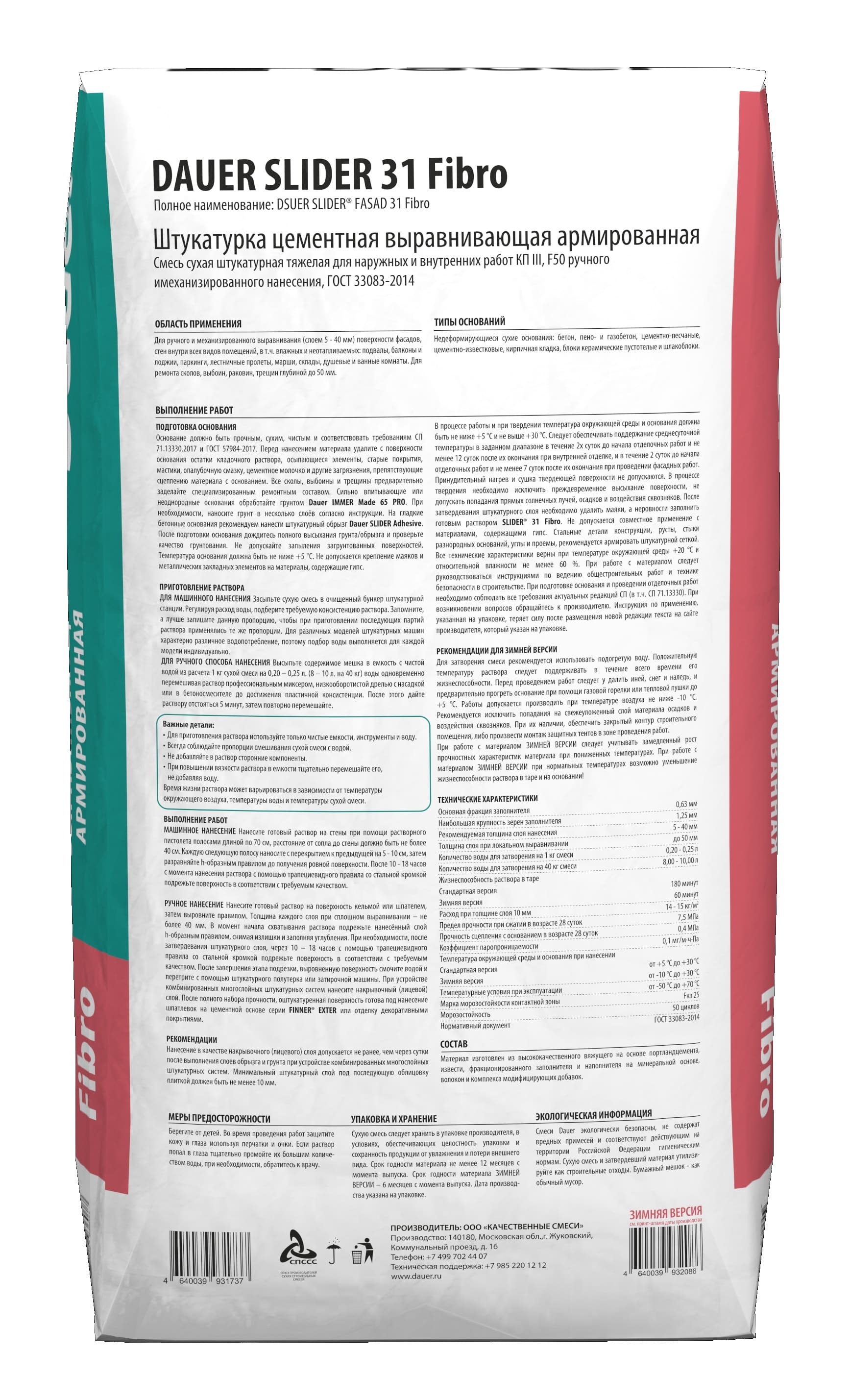 Армированная штукатурка для ручного и механизированного выравнивания (слоем 5 - 40 мм) поверхности фасадов, стен внутри всех видов помещений, в т.ч. влажных и неотапливаемых. Подходит для ремонта сколов, выбоин, раковин, трещин глубиной до 50 мм.
