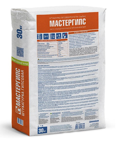 МАСТЕРГИПС это штукатурная смесь белого цвета на основе гипса, обладающая пластичностью, устойчива к образование усадочных трещин, Глянцуется, обеспечивая гладкую поверхность без дополнительного шпаклевания.