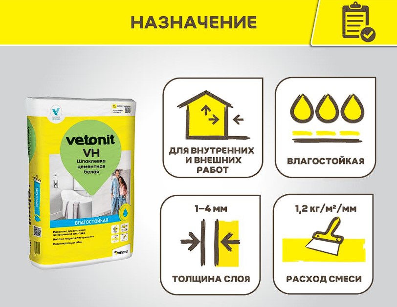 Ветонит ВХ это цементная шпаклевка, белого цвета, является влагостойкой и высокопрочной. Экономна в расходовании. Качество поверхности после шлифовки не ниже К2 согласно СП 71.1330 2017. Доставка бесплатная при заказе полной машины 20 тонн.