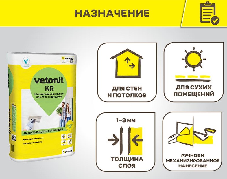 Ветонит КР это белая сухая финишная шпаклевка на органическом связующем. Имея максимальный размер зерна всего 0,3 мм, она позволяет создать гладкий матовый защитный слой. Качество поверхности после шлифовки не ниже К3 согласно СП 71.1330 2017. Доставка бесплатная при заказе полной машины 20 тонн.