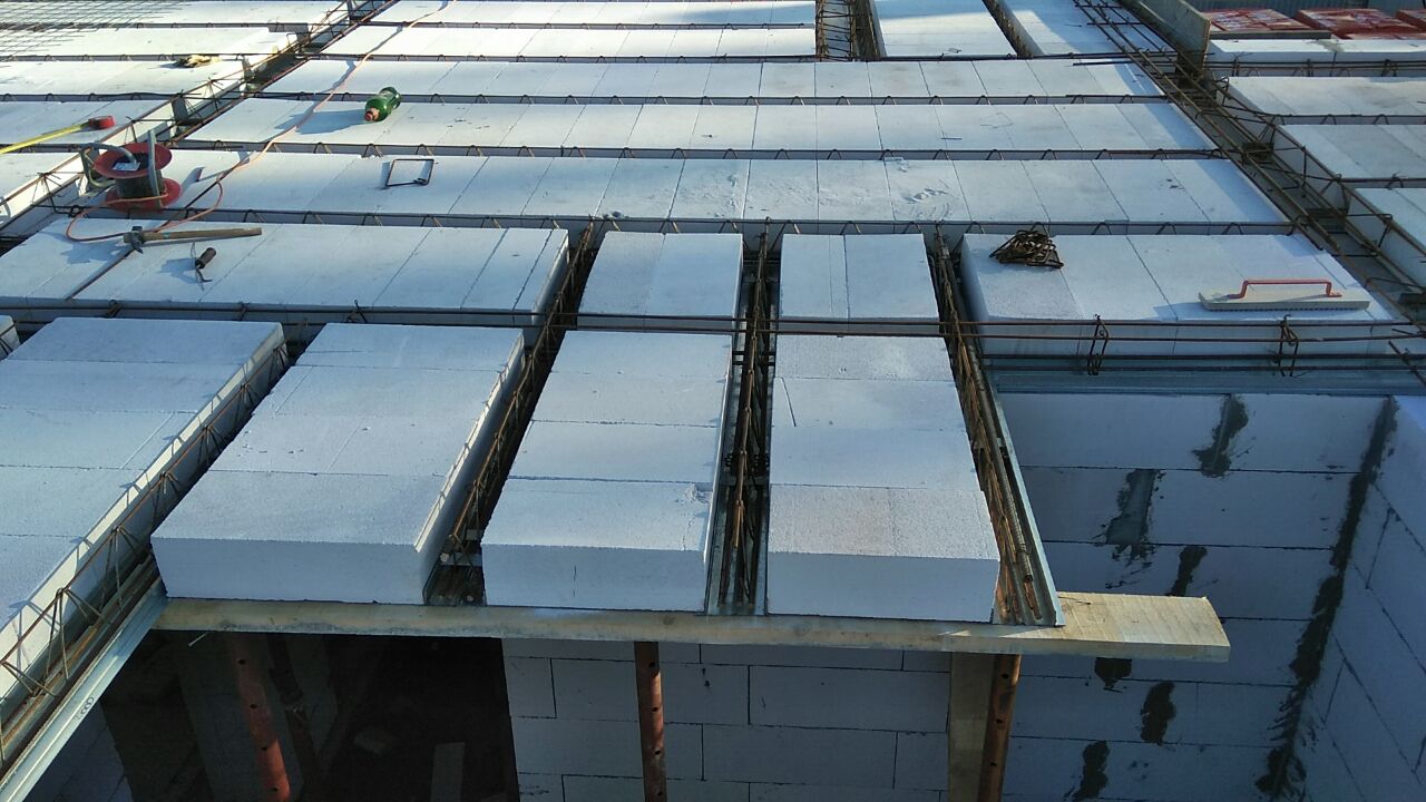 Металлизированная балка СМП МАРКО 250 из арматурного каркаса и оцинковоного корпуса, с дополнительным армированием D12 используется для перекрытия высотой 250 мм. В качестве блока- вклыдыша можно использовать стеновой газобетонный блок плотностью не менее D300.