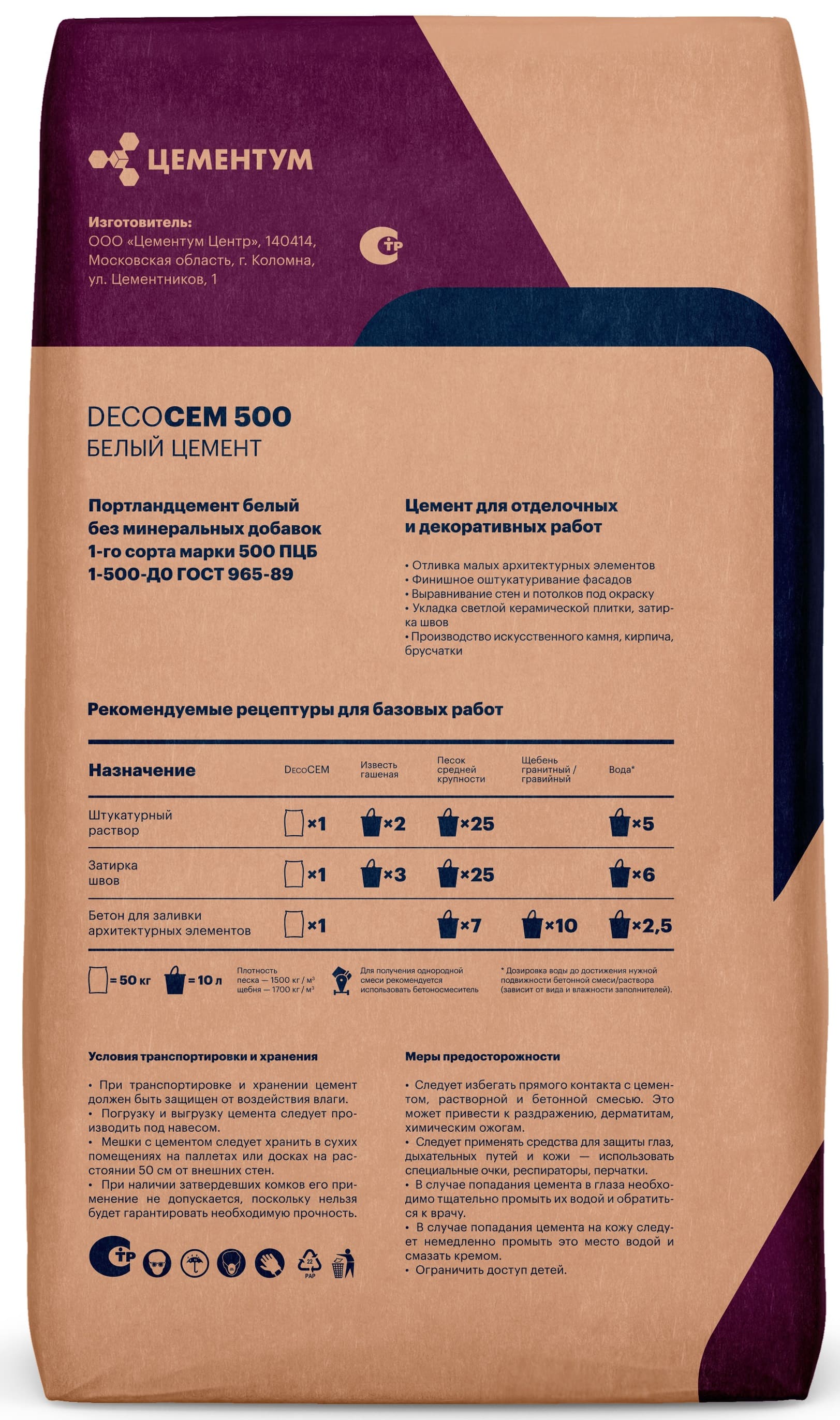 Белый портландцемент без минеральных добавок 1-го сорта белизны, выпускается на основе белого клинкера, подходит для широкого спектра строительных работ.