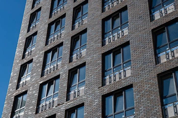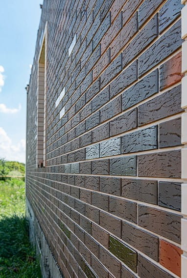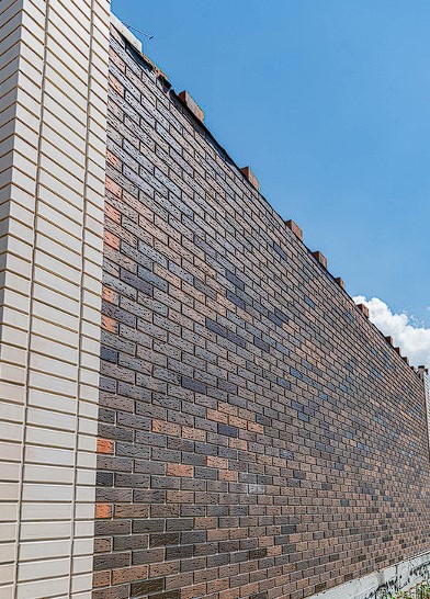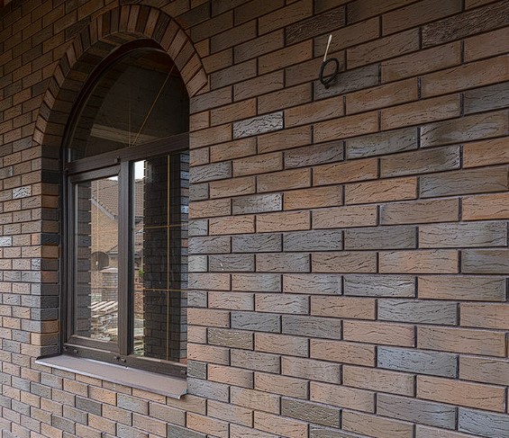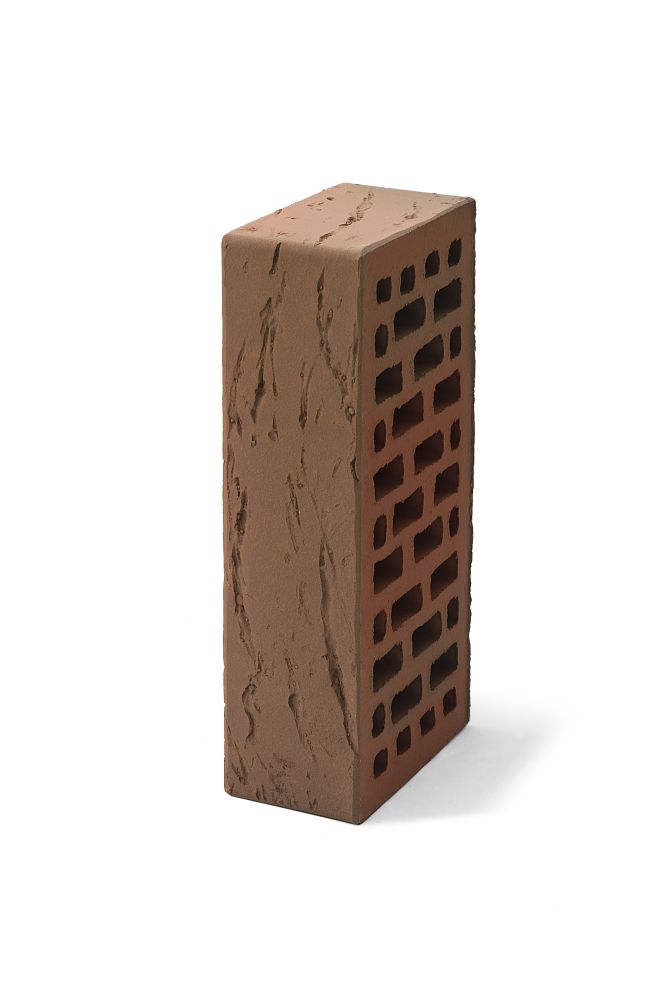 Этот кирпич обладает наиболее выраженной фактурой в рамках данной коллекции. Она сочетает в себе технологию «флешинг», которая позволяет добиться эксклюзивных темно-коричневых оттенков с легким блеском на некоторых кирпичах, и особенную рифлёную поверхность.