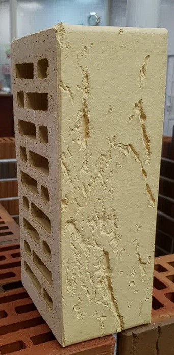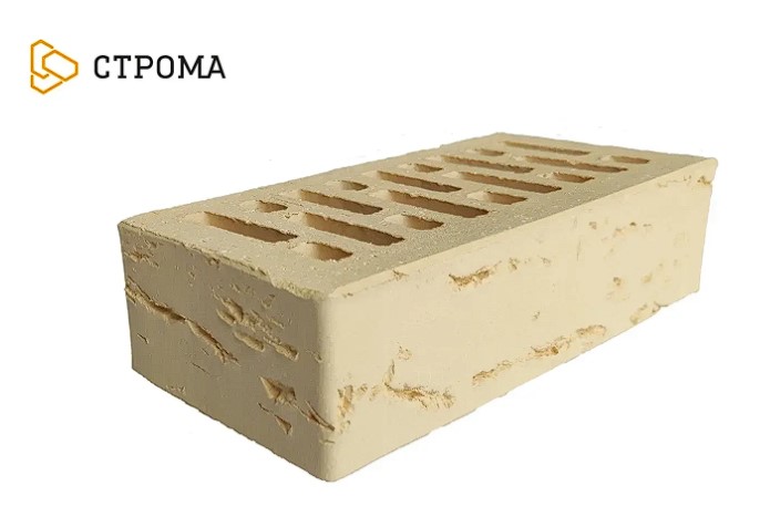 Пустотелый лицевой кирпич формата 1НФ цвета Слоновая кость, с поверхностью кора дуба и с маркой прочности М150 бренда «Строма».