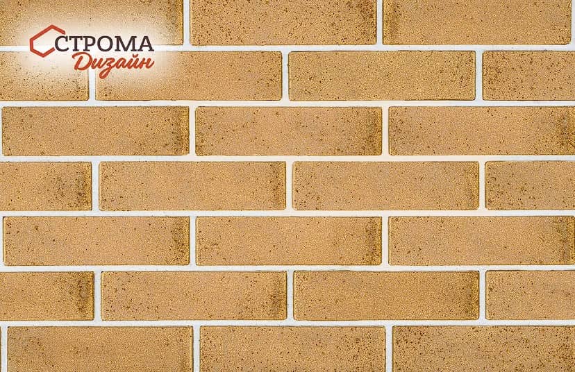 Пустотелый лицевой кирпич формата 1НФ цвета Кортес, с поверхностью кора дуба + инкрустация, и с маркой прочности М175 бренда «Строма».