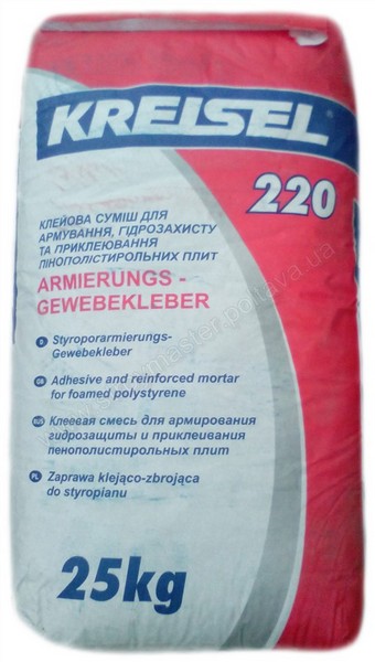 Клеящий раствор для устройства армированного стеклосеткой слоя на фасадных теплоизоляционных плитах из пенополистирола, а также для приклеивания плит из пенополистирола к основаниям.