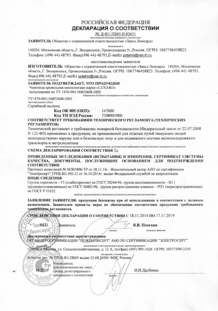 Покрытие из алюцинка. Не подвержена коррозии, устойчива к жаре и морозу, не боится резких перепадов температуры, в отличие от керамической кровли. Гарантийный срок службы — 35 лет.
