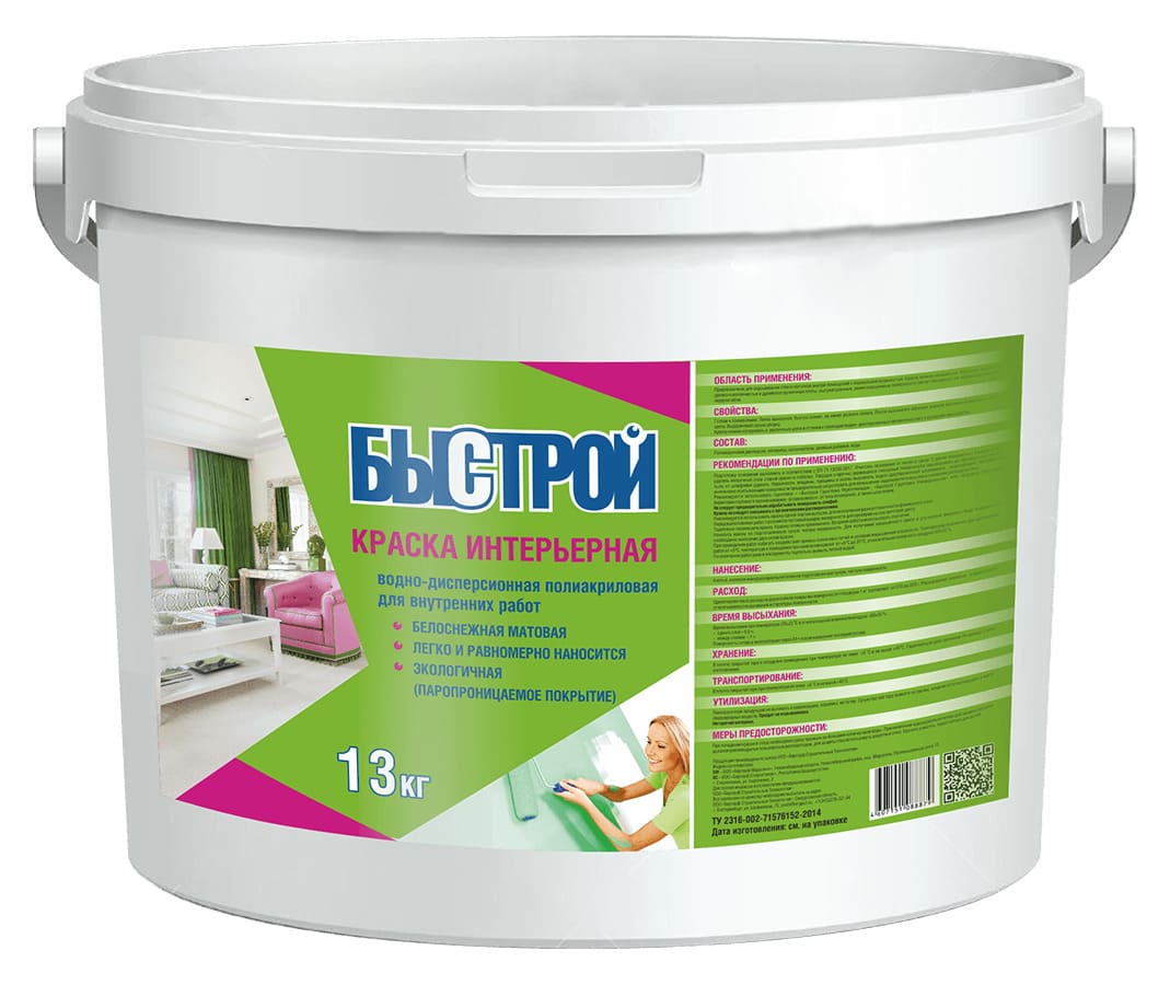 Подготовку основания выполнять в соответствии с СП 71.13330.2017. Очистить основание от пыли и грязи. С ранее окрашенных поверхностей удалить непрочные слои старой краски и побелки. Твердые и прочно держащиеся глянцевые поверхности зашлифовать до матового состояния, пыль от шлифовки удалить. Неровности, впадины, трещины и сколы выровнять водно-дисперсионной шпатлевкой, зашлифовать. Меловые и интенсивно впитывающие поверхности предварительно загрунтовать для повышения надежности покрытия и снижения расхода краски. Рекомендуется использовать грунтовку «Быстрой Грунтовка Акриловая глубокого проникновения», количество слоев зависит от впитывающей способности основания. Не следует предварительно обрабатывать поверхность олифой. Краску не следует смешивать с органическими растворителями. Краску перед применением тщательно перемешать. Во избежание различий в оттенке на одной поверхности следует использовать продукт с одинаковым номером партии (см. на упаковке) или предварительно смешать материалы разных партий в пропорции 1:1. В зависимости от условия нанесения, а также фактуры окрашиваемой поверхности реальные оттенки цветов могут немного отличаться от эталонных. Перед при-менением необходимо выполнить пробное нанесение и проверить высохшее покрытие на соответствие желаемому цвету. Тщательно перемешать краску. Краска готова к применению, при необходимости возможно раз-бавление водой не более 5%. Во время работы использовать перчатки. Наносить краску на подготовленную сухую чистую поверхность. Для получения насыщенного цвета и улучшения внешнего вида поверхности необходимо нанесение двух слоев краски. При проведении работ избегать воздействия прямых солнечных лучей и условий повышенной влажности. Температура основания для выполнения работ от +5°С, температура в помещении при нанесении краски от +5°С до 35°С, относительная влажность воздуха (65±5) %. По окончании работ руки и инструменты тщательно вымыть теплой водой. Нанесение: Кистью, валиком или краскораспылителем на подготовленную сухую, чистую поверх-ность. Расход: Ориентировочный расход на двухслойное покрытие поверхности площадью 1 м2 составляет от 270 до 320 г. Расход может меняться в зависимости от впитывающей способности основания и структуры поверхности. Время высыхания: Время высыхания при температуре (20±2)°С и относительной влажности воздуха (65±5) %: одного слоя – 0,5 ч; между слоями - 1 ч. Поверхность готова к эксплуатации через 24 часа после нанесения последнего слоя.
