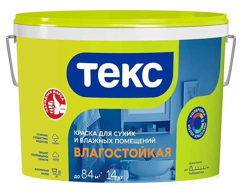 Влагостойкая латексная краска образует покрытие, устойчивое к воздействию водяного пара и конденсата. Легко наносится и не мелит. Не применяется на поверхностях, подвергающихся прямому воздействию воды.