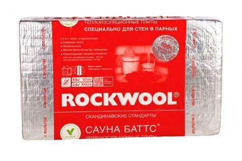 САУНА БАТТС – Изоляция для бань и саун, специально для стен и потолка парных. 2 в 1: теплоизоляция + пароизоляция (фольга).