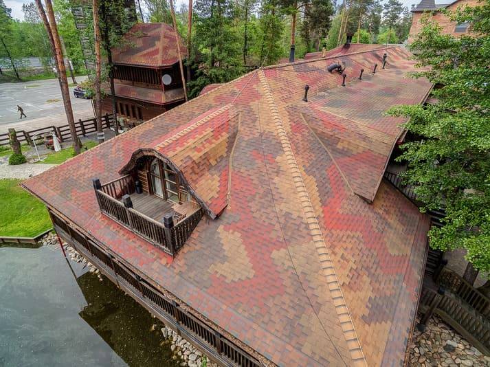 Гибкая черепица (битумная черепица, мягкая кровля) – красивый и долговечный кровельный материал. В ее основе – холст из стекловолокна, пропитанный битумом высокого качества. Верхний слой из цветной минеральной крошки обеспечивает дополнительную защиту, огромная цветовая гамма и количество форм позволит воплотить самые смелые дизайнерские задумки.