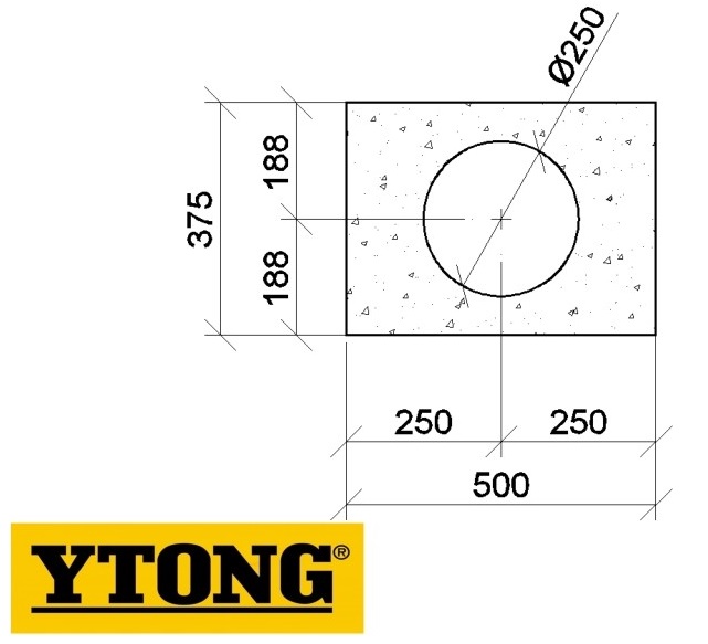 О-блок YTONG (ISTKULT) – Газобетонные блоки YTONG (ISTKULT) длиной 500 мм со сквозным отверстием. Для вентиляционных каналов.