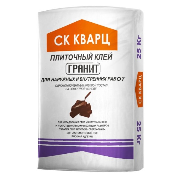 Клеевая смесь для укладки плитки из природного камня, гранитно-керамической плитки больших размеров (600х600мм и более), фарфоро-керамической плитки, так же котто, клинкеров и им подобных материалов; используется при облицовке участков с большими потоками людей и транспорта, таких как школы, больницы, торговые центры и прочее, применяется при облицовке стен и пола внутри и снаружи помещений.