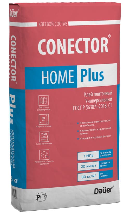 Для укладки (слой 2-15 мм) на пол и стены керамической и клинкерной плитки, керамогранита и натурального камня (кроме мрамора, базальта, габбро) весом до 80 кг/м2. Максимальный размер грани керамической плитки – 60 см, максимальный размер грани керамогранитной плитки – 50 см. Класс клеевой смеси по ГОСТ 56387-2018 - C1.