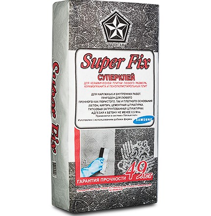Плиточный клей Русеан Superfix - это сухая клеевая смесь, основой которой является высококачественный цемент. Для повышения пластичности и эксплуатационных характеристик в состав смеси добавлены специальные пластификаторы и добавки.