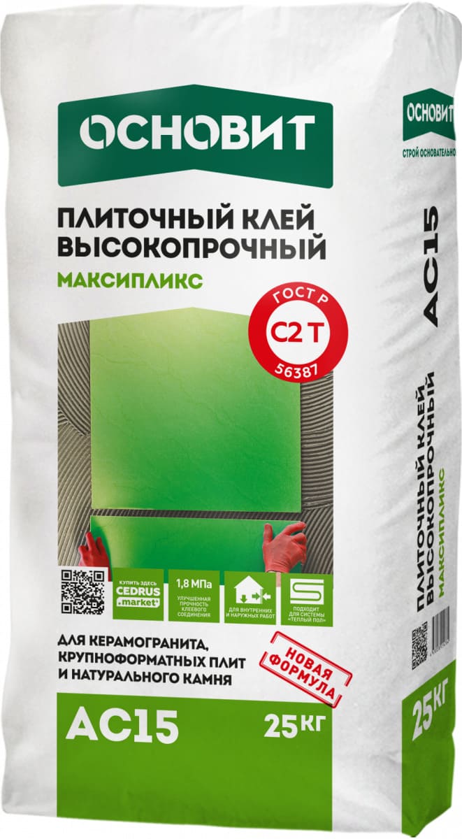 ОСНОВИТ МАКСИПЛИКС АС15 это водостойкий, безусадочный, высокопрочный клевой состав, устойчив к сползанию.