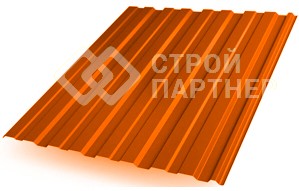 Экономичный профиль с минимальной высотой ступени подойдёт для небольших кровель или устройства ограждений. При не очень высокой прочности, материал является более гибким, податливым и смотрится аккуратно. Покрытие Полиэстер с гладкой глянцевой поверхностью и гарантией до 10 лет.