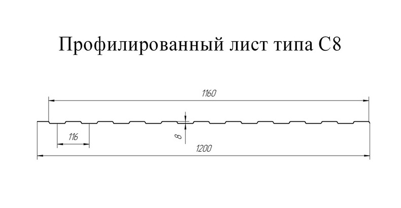 Экономичный профиль с минимальной высотой ступени подойдёт для небольших кровель или устройства ограждений. При не очень высокой прочности, материал является более гибким, податливым и смотрится аккуратно. Покрытие Полиэстер с гладкой глянцевой поверхностью и гарантией до 10 лет.