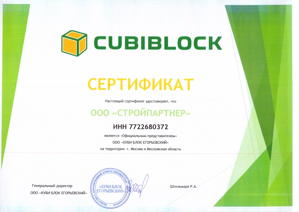 Блок газосиликатный перегородочный для малоэтажного строительства CUBIBLOCK, ровный, плотностью D500, шириной 75 мм, длиной 625 мм, высотой 250 мм.