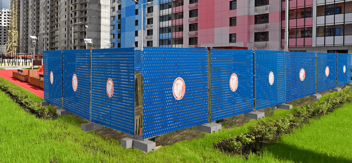 Используются для огораживание периметра, опасных зон на дорогах, строительных площадках, объектах энергетики, и других местах, где необходимо обеспесчить безопасность. Изготовлено из перфорированного алюминевого листа, ФБС блока и стальных труб.