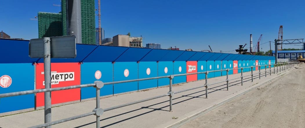 Используются для защиты территории, на которой находятся ценные строительные материалы или техника для работ. Изготовлено из композитных панелей, ФБС блока и стальных труб.